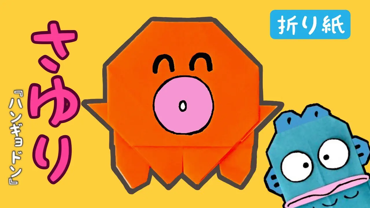 説明文簡単なさゆりの折り紙の作り方です。サンリオのキャラクター「ハンギョドン」の親友であるタコの女の子「さゆり」を作ることができます。#折り紙#折り方#ハンギョドン#サンリオ#さゆり...