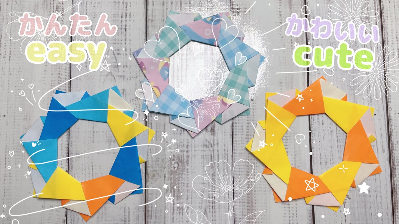【折り紙】簡単🍒かわいい❤️七角形リース🥰Make a simple and cute heptagonal wreath with a single origami paper! – cotori_origami