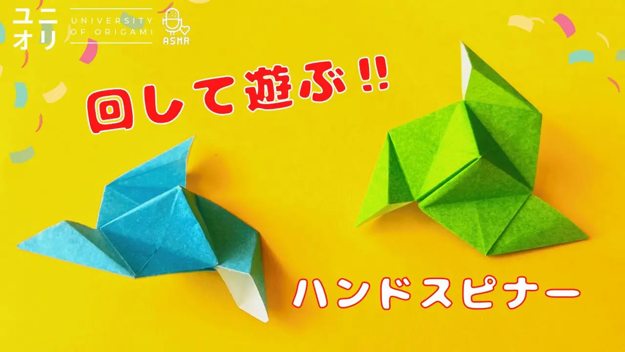 説明文【折り紙遊べる】遊べる簡単折り紙 ハンドスピナーの折り方です。 クルクルと回して楽しめる遊べる折り紙おもちゃの作り方です。 好きな色の折り紙で作って、吹いたり回したりしてフィジットスピナーをお楽しみく...