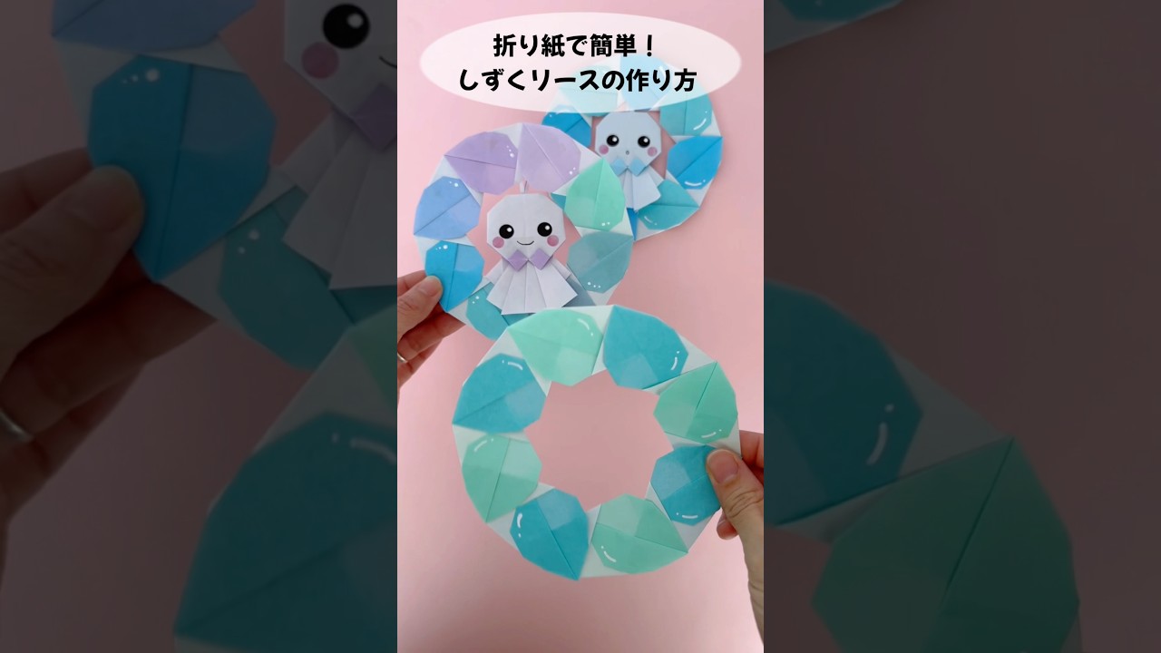 タイトル【折り紙/梅雨飾り】簡単!しずくリースの作り方*How to Make Origami Water Drop Wreath. #折り紙 #origami #梅雨 #papercraft