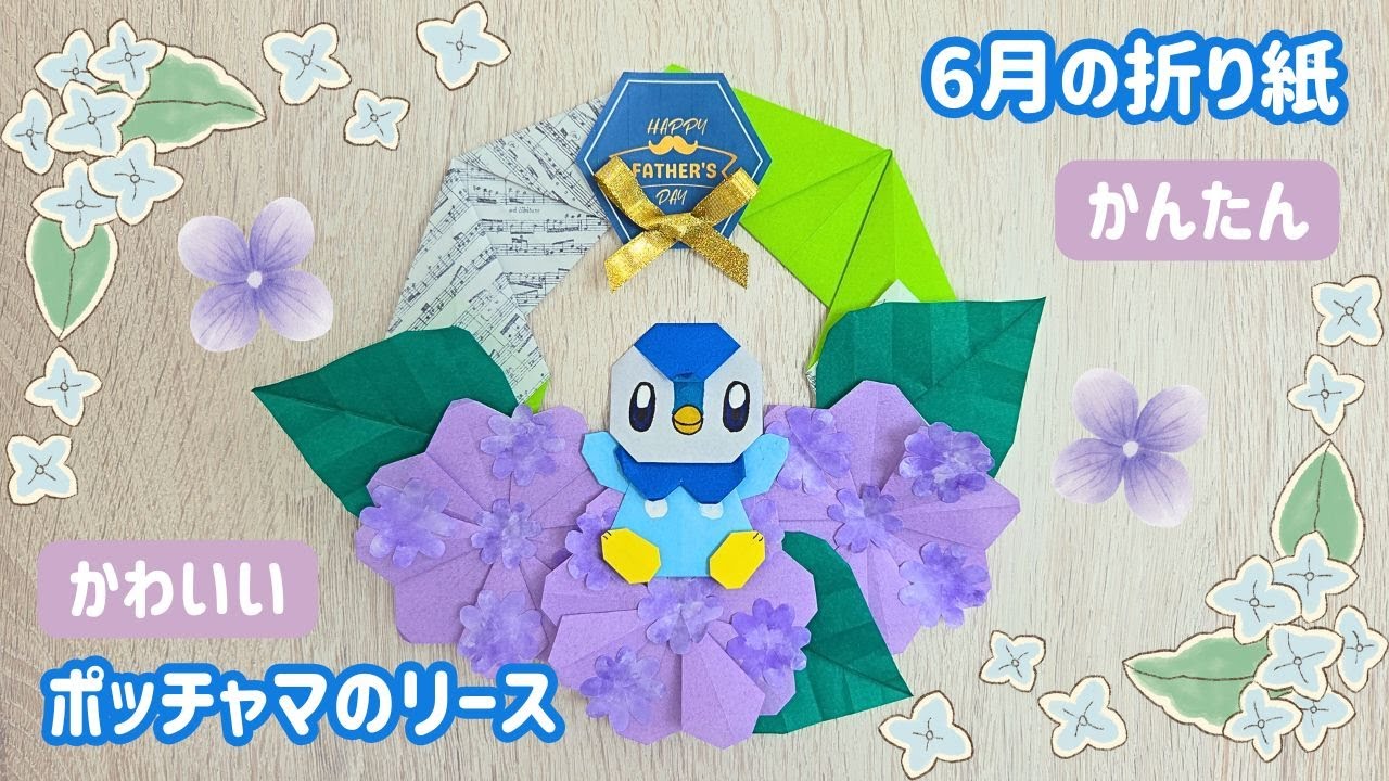 | タイトル | 【6月の折り紙リース】ポッチャマ×紫陽花の簡単かわいい壁飾り制作 : Easy June Origami Wreath Cute Piplup & Hydrangea Wall Decorati |