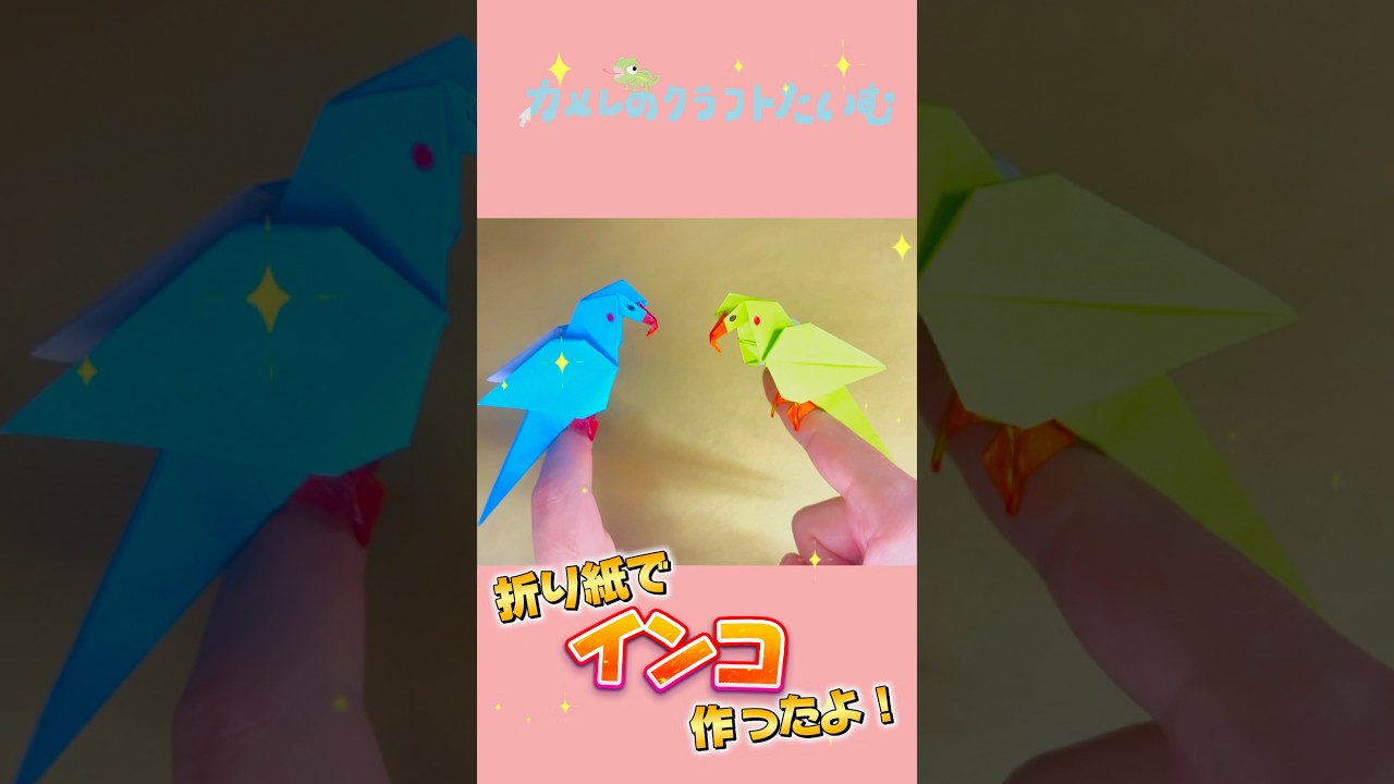 タイトル【折り紙】指やペンにとまるインコを作ってみたよ♪ #簡単工作 #手作り工作 #diy #homemadepapercraft #ハンドメイド #easycraft #子育て #保育園 #origami