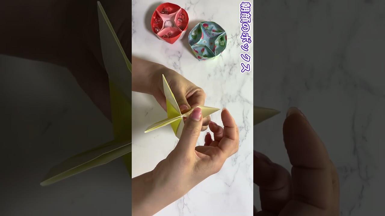 タイトル【簡単折り紙】朝顔のボックス✨How to make Jewel box#박스#ボックス#箱#物入れ#box#盒子#डिब्बा#あさがお#喇叭花#折り方#おりがみ#easy#origami#종이접기
