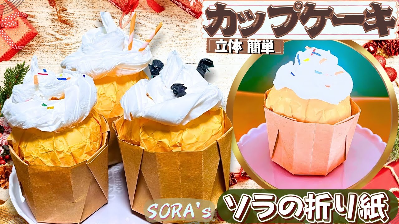 | タイトル | カップケーキの折り紙|立体で簡単な作り方!誕生日やクリスマスの演出ににぴったり【ソラ】 |